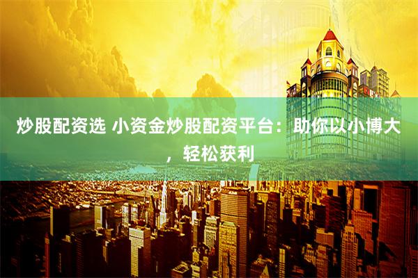 小资金炒股配资平台为资金有限的投资者提供了以小博大、轻松获利的机会。然而炒股配资选,投资者需要谨慎选择配资平台,并严格控制风险。通过合理利用配资平台,投资者可以放大自己的资金,提高收益,实现财富增长。